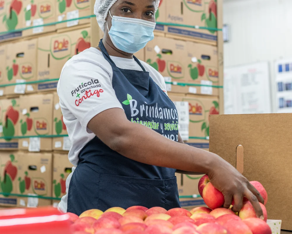 Experiencia de nuestros equipos: nuestro personal selecciona y empaca cuidadosamente la fruta según las necesidades de cada supermercado. ¡Cada bolsa o bandeja está hecha con amor y precisión!
